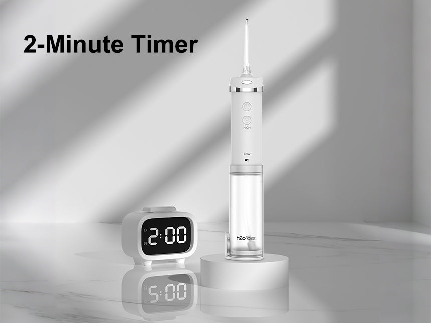 Your perfect oral cleaning rhythm is ensured by our two - minute timer. Designed to adhere to professional dental hygiene guidelines, it takes the guesswork out of how long to floss. The timer starts automatically when you power on the water flosser. A gentle beep signals the end of the two - minute cleaning cycle. Ensures you clean each area of your mouth thoroughly for a complete and effective clean